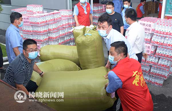 7月6日下午,由安徽佳力奇先進復合材料科技股份公司、團市委捐贈的價值20萬元的物資,裝車完畢后發往靈璧縣抗疫一線。 記者 王明輝 攝