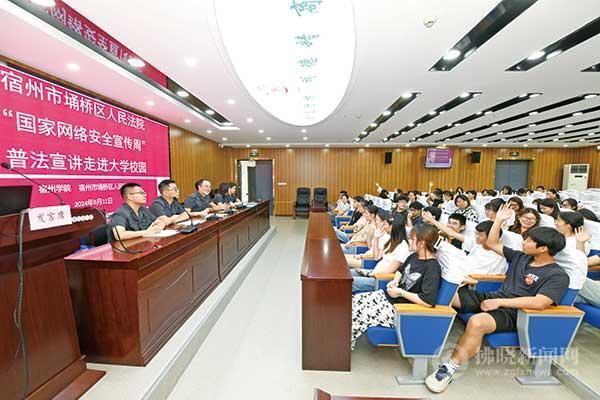 9月11日是國(guó)家網(wǎng)絡(luò)安全宣傳周電信日。當(dāng)日上午,埇橋區(qū)人民法院組織法官走進(jìn)宿州學(xué)院,結(jié)合日常涉網(wǎng)絡(luò)犯罪真實(shí)案件,向大一新生普及網(wǎng)絡(luò)安全常識(shí),提升學(xué)生安全防范意識(shí),謹(jǐn)防網(wǎng)絡(luò)詐騙。 特約攝影 阮傳寶