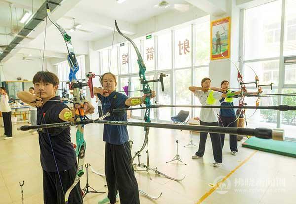 7月3日,在宿州市十一中學(xué)射箭訓(xùn)練基地,備戰(zhàn)省十六運的射箭隊員正進行緊鑼密鼓的訓(xùn)練。在前兩屆安徽省運動會上,宿州射箭隊共獲得5枚金牌,在2024年省射箭錦標賽上更是獲得了九金五銀一銅的輝煌戰(zhàn)績。此次選拔集訓(xùn),教練團隊結(jié)合每名隊員的特點和優(yōu)勢,從體能提升、心理素質(zhì)、比賽技巧等方面進行系統(tǒng)全面的科學(xué)訓(xùn)練,力爭在明年的省十六運賽場上摘金奪銀,為宿州體育代表隊贏得更多榮譽。 記者 馬峰 蘇洋 攝