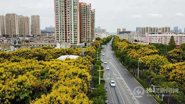 金秋時節(jié),宿城一些主干道兩旁的欒樹進入盛花期,金黃色的花朵一簇簇、一串串,隨風搖曳、美不勝收,給美麗的秋日增添了一份詩意。特約攝影 張成伍