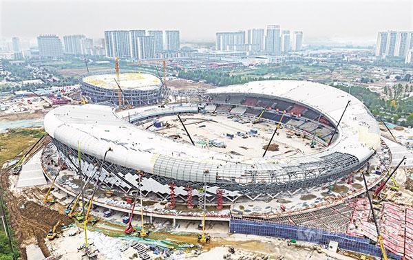 10月7日,正在施工中的宿州奧體中心。繼全面完成主體鋼結構工程后,目前,宿州奧體中心正在進行設施裝修和設備安裝,同步高效建設中的游泳館和全民健身中心已與奧體中心主體建筑連為一體,整體外觀和功能布局清晰可見。這座總建筑面積近9萬平方米、被市民稱為宿州版“鳥巢”的大型體育綜合體,正以“進度和質量”并重的姿態,穩步向竣工目標邁進。