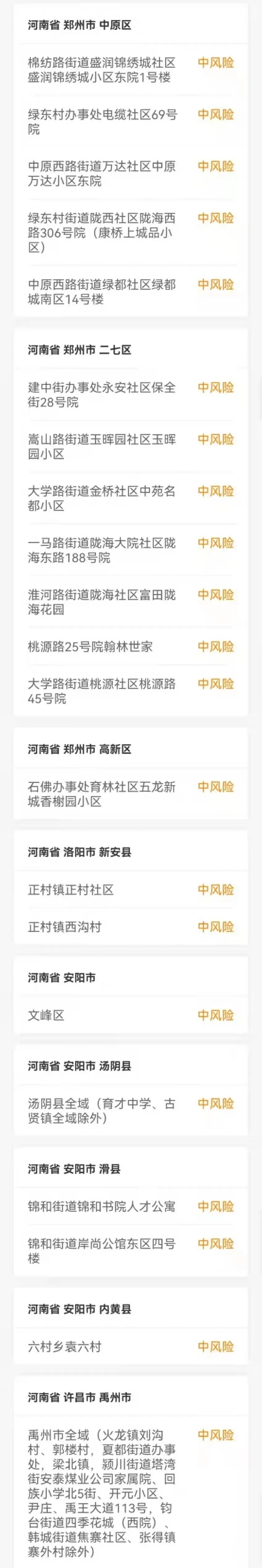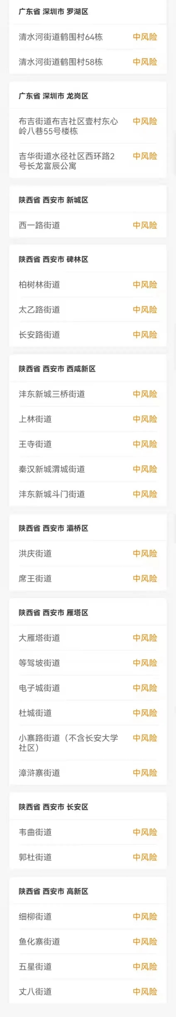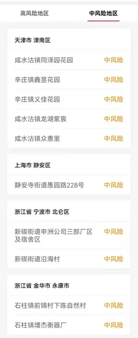 2.近期有天津市、河南省鄭州市、河南省許昌市、河南省周口市、河南省洛陽市、河南省商丘市、河南省信陽市、河南省安陽市、陜西省西安市、陜西省延安市、陜西省咸陽市、廣東省深圳市、浙江省寧波市、浙江省金華市、上海市寶山區、上海市奉賢區、上海市楊浦區、上海市浦東新區等地以及其他有中高風險地區的市(直轄市為區)旅居史的來(返)宿人員,要及時向所在地社區(村)、所在單位或所住酒店報告,配合落實信息登記、核酸檢測和健康監測等防控措施。
