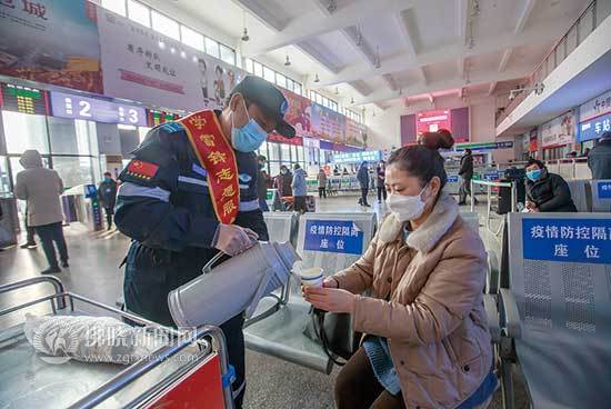 來自埇橋區(qū)友安應(yīng)急救援隊(duì)的志愿者馬強(qiáng)帶領(lǐng)隊(duì)員們,在候車大廳為候車旅客義務(wù)提供熱水。“春節(jié)臨近,為進(jìn)一步加強(qiáng)旅客出入站管理和良好秩序,我們主動(dòng)配合工作人員,為旅客開展志愿服務(wù)勤務(wù)保障活動(dòng)。”馬強(qiáng)告訴記者,參加快客站志愿者活動(dòng),就是想要以實(shí)際行動(dòng)體現(xiàn)服務(wù)他人和社會(huì)。“從17號(hào)開始春運(yùn),我們志愿服務(wù)時(shí)間為每天上午8:00至11:00,下午3:00至5:00。”