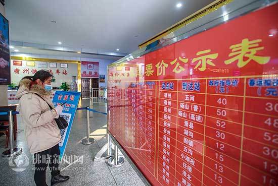 旅客在市快客站查看春運(yùn)票價(jià)。