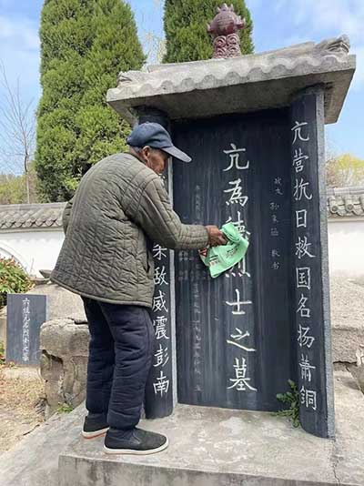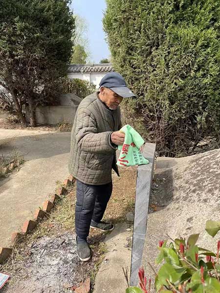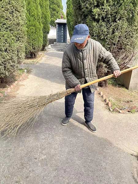 年近古稀的他,每天帶著工具,清理陵園內(nèi)外的秸稈和雜草。附近村民、中小學生被他的行為所感動,主動前來幫忙,陵園很快煥然一新。