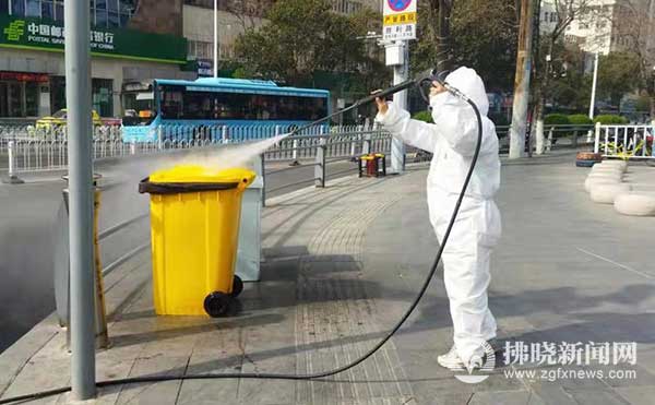 市環(huán)衛(wèi)處在城區(qū)各重點路段、小區(qū)、醫(yī)院及商場等人流密集區(qū)域設置廢棄口罩專用垃圾桶30處,設置明顯標識,并指派專人管理、專人清運、專人消殺。一線環(huán)衛(wèi)工人每日對垃圾桶、果皮箱、公交站臺等進行消毒,減少病媒生物孳生和傳播。對屬于市環(huán)衛(wèi)處直管的143座公廁、19座垃圾中轉站及生活垃圾處理廠等,加強保潔管理,張貼疫情防控溫馨提示。