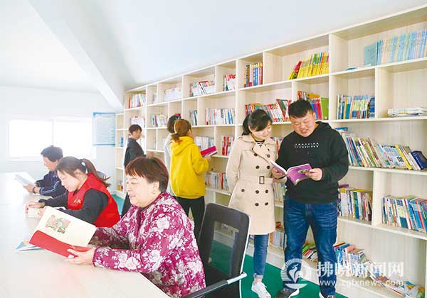 沱河街道辦事處居民在社區圖書室看書。