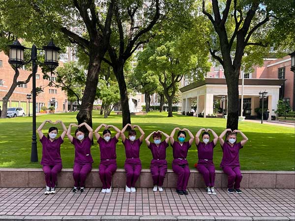 安徽援滬醫療隊在酒店草坪前合影留念。