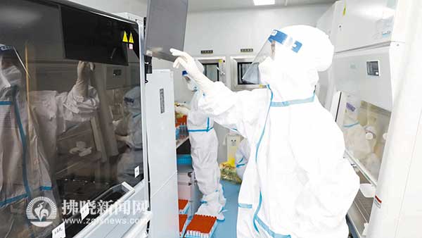 核酸檢測方艙內工作人員操作核酸提取機