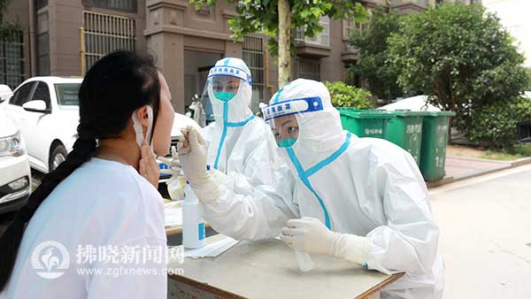 醫(yī)護(hù)人員在為泗縣觀湖苑小區(qū)居民核酸采樣