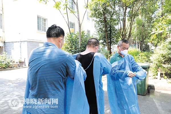 7月11日,泗縣春港花苑小區志愿者消殺作業后脫下防護服,汗水濕透了衣帽。 特約攝影 吳天元