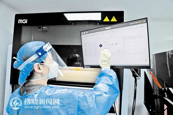 作為領(lǐng)隊(duì),檀平負(fù)責(zé)協(xié)調(diào)溝通、對(duì)接聯(lián)系、信息報(bào)送等工作,其他24名隊(duì)員中,有6人在氣膜實(shí)驗(yàn)室開展檢測(cè),其余人員每9人1組在2臺(tái)移動(dòng)核酸檢測(cè)實(shí)驗(yàn)室進(jìn)行檢測(cè)。“為提高檢測(cè)效率,我們?nèi)珕T輪換上崗,人停機(jī)不停,全力保障按時(shí)按量完成檢測(cè)任務(wù)。”檀平說(shuō)。