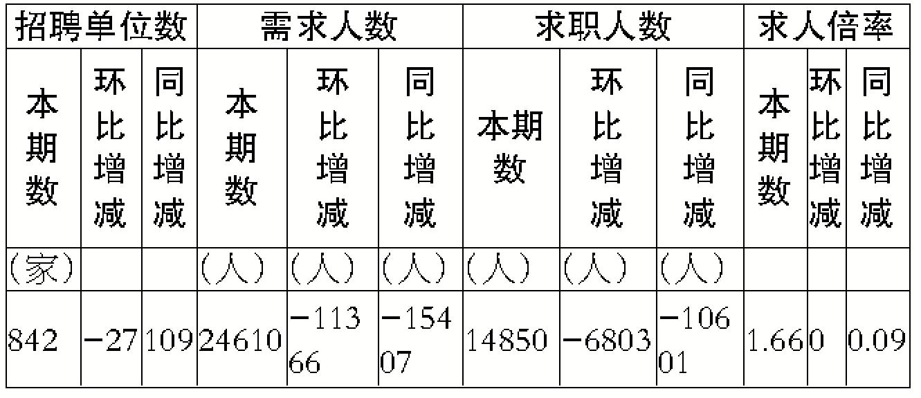 二季度,全市各級公共就業服務機構共舉辦招聘會164場次,841家企業進場招聘,環比減少3.11%,同比增加14.87%。需求人數環比、同比分別減少31.59%、38.50%;由于三月底多地疫情散發,線下大型招聘活動停止舉辦,舉辦的招聘會中有86場次為線上招聘,求職人數環比、同比分別減少31.42%、41.65%;本期求人倍率環比保持不變、同比下降0.09(見下表)。