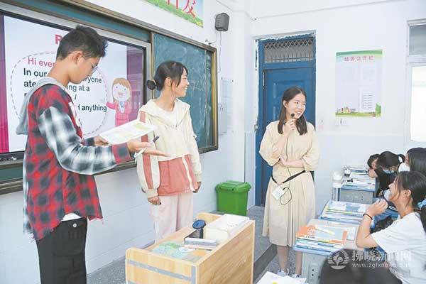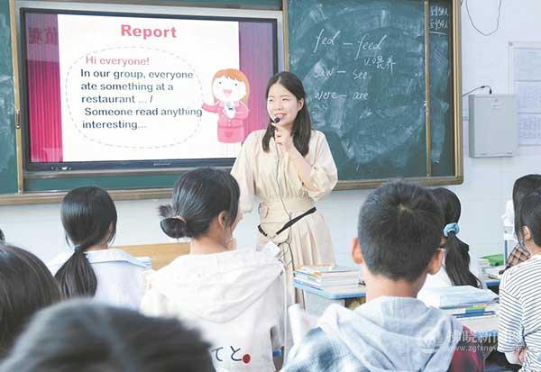 英語專業的她,不想延續過去那種“填鴨式”“滿堂灌”的教學方法,認為讓學生說出來、走出去才是學好英語的重要手段,在她的潛心鉆研下,Interview and Speech(采訪與演講)這種創新教學形式出現在課堂上。學生們以小組為單位,在指定場景之下扮演采訪者與演講者,新奇的教學模式激發了學生的學習興趣,同時也將英語學習很自然地融入到生活中來,大大提升了學習效率。表現好的會獲得小禮物的獎勵,激發了學生們學習主動性。胡丹妹說:“新的教學方法還在不斷完善中,但可以看見的是學生興趣漸濃,課堂學習氛圍愉快活潑,這對學生的英語水平提高起到了明顯的效果。”對于自己創新的教學方法,胡丹妹信心滿滿。