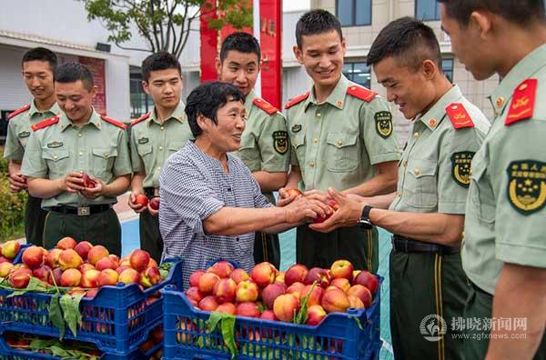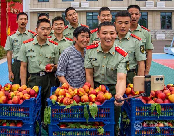 “兵媽媽”高艷把自家的油桃送到碭山縣武警中隊,慰問戰士們。