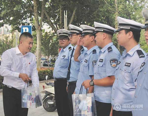 慰問(wèn)高溫下堅(jiān)守崗位的一線交警。