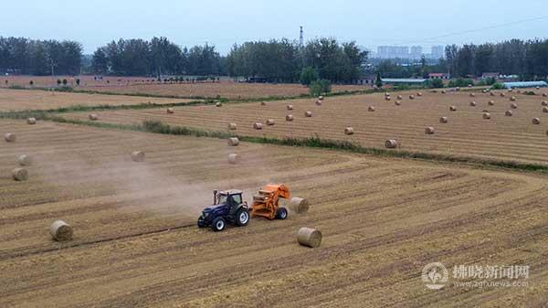 埇橋區(qū)汴河街道馬梨園村玉米秸稈打捆離田。 特約攝影 丁輝