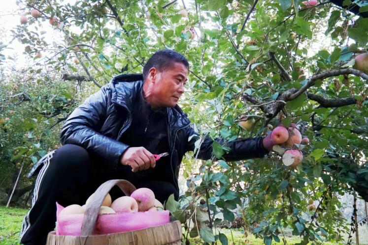 “今年蘋果長得不錯,色澤飽滿、含糖量高,價格也不錯。”農場負責人楊前進正忙著為山東臨沂上門收購的果商采摘蘋果,豐收的喜悅盡收眼底。
