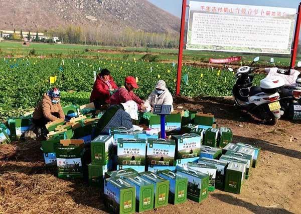 11月12日,蕭縣龍城鎮帽山村“蘿卜采收節暨品鑒觀摩會”在帽山腳下舉行。雖已入冬,但田間地頭,一片熱火朝天的景象。菜農們挖的挖、屯的屯,吆喝著搭檔配合抬放;婦女們盛裝上陣,變身“網紅達人”,站在蘿卜地里帶貨直銷,為家鄉宣傳;鎮文化站組織了簡樸而又熱烈的文藝表演,載歌載舞,慶祝蘿卜豐收;電視臺現場連線,進行助農直播;蕭縣駐北京、上海等地商會負責人也親臨收獲現場,親口嘗一嘗“彎腰青”的味道;適逢星期天,不少城市居民也帶著孩子,走進田野,體驗農耕文化的樂趣。