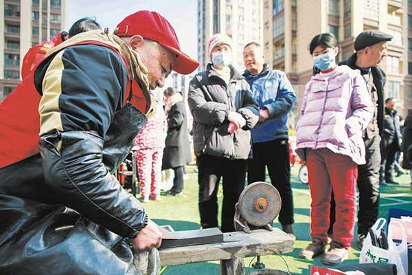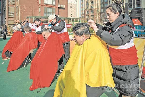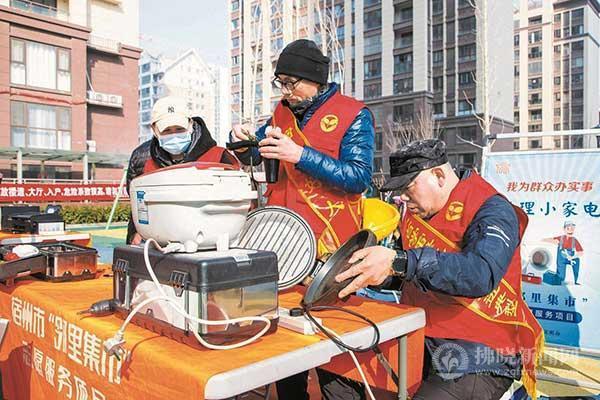 “阿姨,您的車子輪胎漏氣了,我?guī)湍蕖!薄笆迨澹囊路a(bǔ)好啦!”……集市一“開張”,“生意”就十分火爆。各“攤位”前,志愿者們紛紛手持工具“埋頭苦干”,居民們像逛集市一樣選擇需要的服務(wù)。“看似是小事,但對(duì)于我們老年人來說,就是大事,他們的服務(wù)讓我感到既方便又暖心。”剛理完發(fā)的居民劉大爺樂呵呵地說。