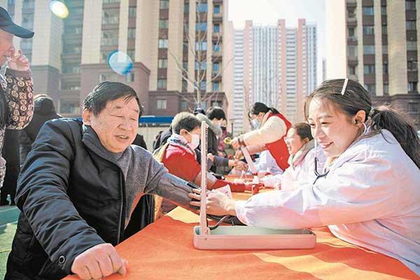 不一會(huì)兒,健康義診的攤位前就排起了長(zhǎng)長(zhǎng)的隊(duì)伍。“大爺,您的血壓偏高,平時(shí)要多注意了。”志愿者陳寶華一邊幫助居民測(cè)量血壓,一邊根據(jù)被測(cè)量者的具體情況,提供關(guān)于健康飲食方面的建議。“獻(xiàn)出一片愛心,為大伙兒做一些力所能及的事,對(duì)我來說很有意義。”陳寶華告訴記者,作為一名臨床醫(yī)生,他經(jīng)常利用假期時(shí)間,穿上“白大褂”,套上“紅馬甲”,充分發(fā)揮自身專業(yè)特長(zhǎng),積極投身到志愿服務(wù)活動(dòng)中。近年來,陳寶華參與醫(yī)療志愿服務(wù)活動(dòng)300余場(chǎng)次,服務(wù)群眾2萬余人次。