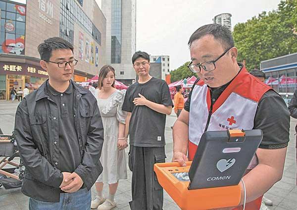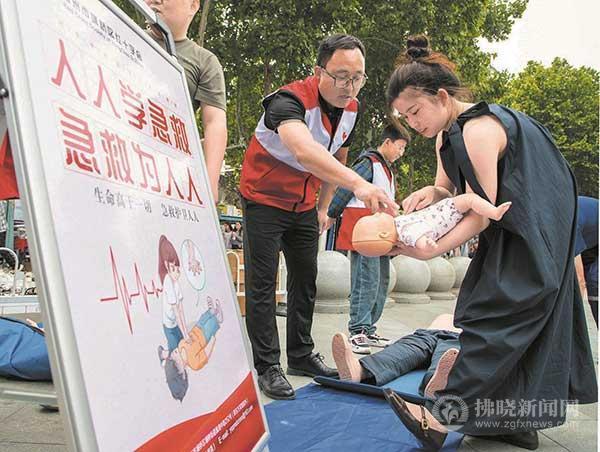 “遇到這樣的情況首先一定要保持鎮定!采用坐姿或者是單膝跪地的姿勢,把嬰兒的身體置于您一側的前臂上……”國購廣場的“益夜市”上,單楠楠用現場模擬的方式向圍觀群眾講解及演示海姆立克急救法,讓大家直觀地了解和掌握小兒氣道異物梗阻的急救方法?!罢婧茫∮辛诉@個‘益夜市’,學習了很多急救知識,關鍵時候可以救命。”現場聽講的趙女士說。自2019年以來,每個周五的“益夜市”里都能見到單楠楠那熟悉的臉龐和矯健的身影。
