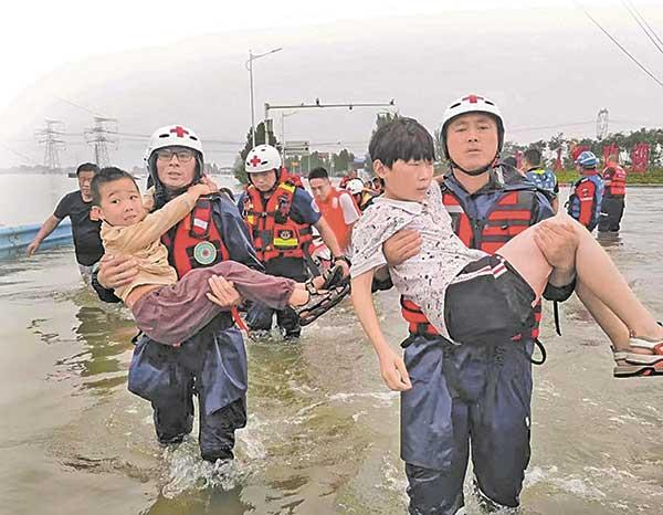 2021年,單楠楠和隊友們奔赴河南災區搶險救援。