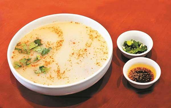 老宿縣羊肉湯制作技藝傳承群體較為龐大,其中老字號“老梅飯店”的羊肉湯在宿州歷史最為悠久,可追溯到清朝光緒年間。老宿縣羊肉湯在梅家人的手里不斷地演變、完善,從產地選羊到成品制作要經過十幾道工序,其獨特的口味一直為人們所樂道。老梅飯店的老宿縣羊肉湯在選料上特別講究,一般只用本地養的幼小山羊。原湯須在18個小時的熬制中不停地調整火候,也要對羊骨、肉量和作料精細配比,使得湯汁均勻濃郁、肉質嫩香,經得起細細品味。
