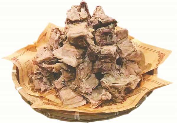 欄桿牛肉選用1至3年黃淮平原上的黃牛為原料,經過宰、泡、搓、洗、漂、鹵、晾等工序,配以36味作料,最后通過一道特殊工序使每一味都能均勻滲透肉中,肉質鮮香,爛而不膩。