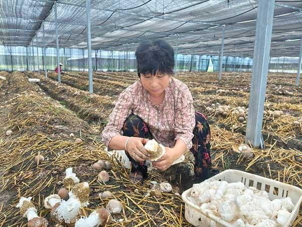 “種植竹蓀不算太復雜,只需將廢棄的竹料打成粉加上木料碎屑和玉米芯,壘成20厘米高、40厘米寬的地壟,覆上少許的土,植入竹蓀菌種,再蓋上麥草,每天按時澆水即可。麥草的用量每畝在二三噸左右,控制好蓀壟的干濕度和溫度,經過近三個月的時間,便可采摘竹蓀?!壁w中夫介紹,這幾棚竹蓀從今年3月份開始種,6月初就陸續成熟,每天能摘四五十斤,可一直摘到10月底,粗略算來,每畝竹蓀的收益大致在4萬元左右。