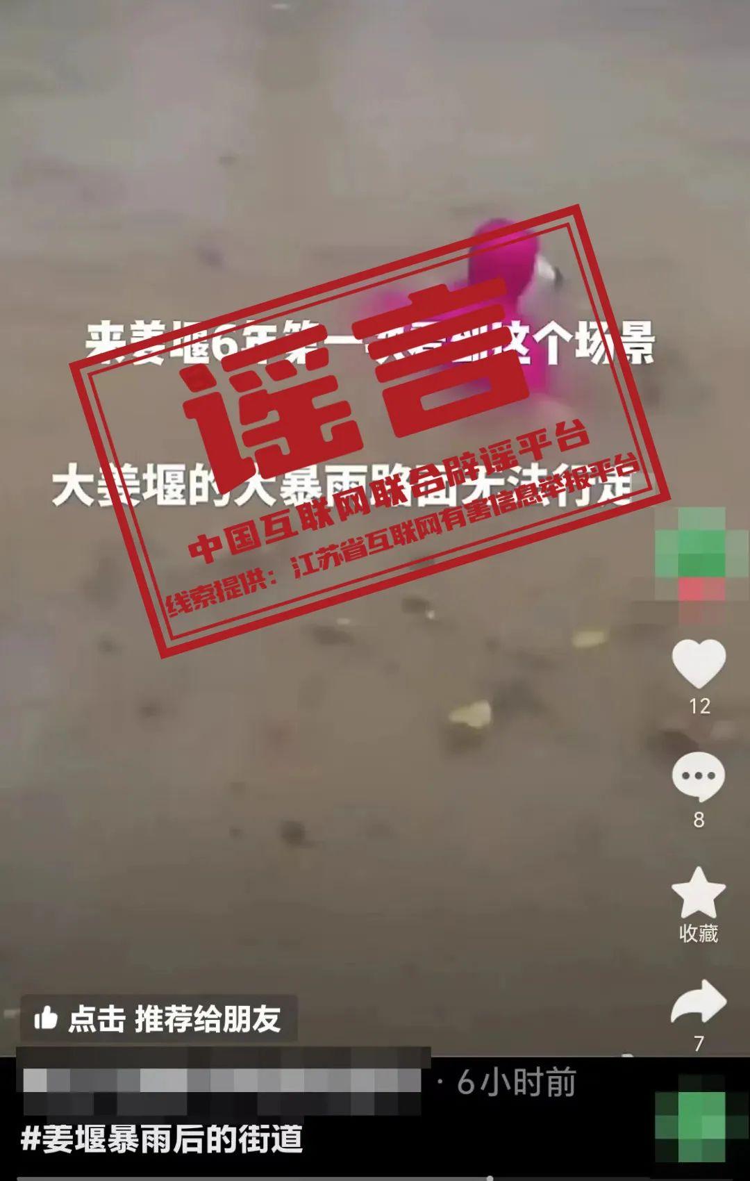 謠 言江蘇泰州姜堰大暴雨后路面無(wú)法行走?