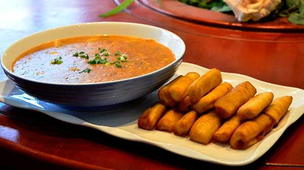 濃稠辛辣的椒糊子與酥脆筋道的油條是天生一對(duì)。一口油條就著熱乎湯下肚,從口腔一直暖到了胃里,這就是幸福的感覺(jué)。