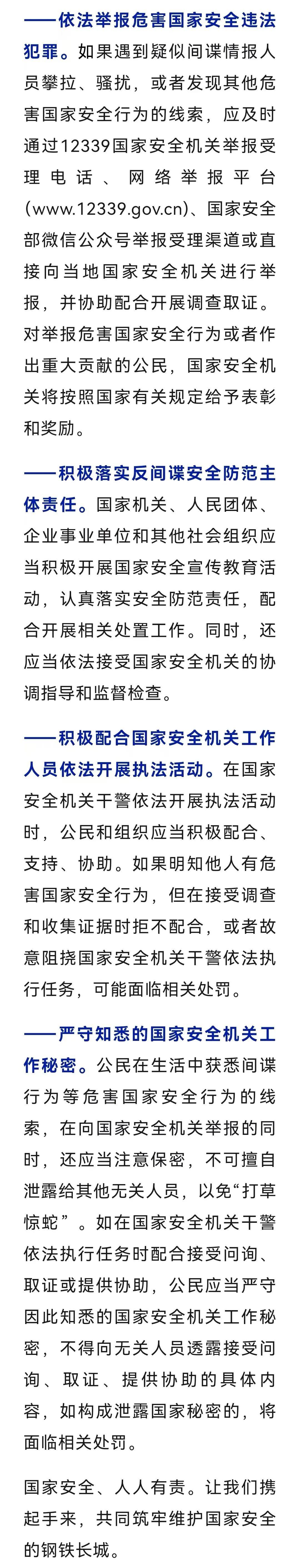 詳情:近年來,國家安全機關在人民群眾支持配合下,有力開展各項工作,堅決維護國家主權、安全、發(fā)展利益。《中華人民共和國反間諜法》和《國家安全機關行政執(zhí)法程序規(guī)定》、《國家安全機關辦理刑事案件程序規(guī)定》等法律法規(guī)規(guī)章為人民群眾配合協(xié)助開展國家安全機關工作、共同維護國家安全提供了法律依據(jù)。(來源:“國家安全部”微信公眾號)