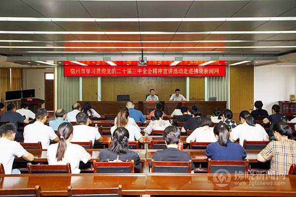 拂曉新聞網訊(記者 馬競)8月28日下午,由市委網信辦舉辦的宿州市學習貫徹黨的二十屆三中全會精神進網站宣講活動走進拂曉新聞網。市委黨校綜合教研室副主任、副教授李紅波作宣講報告。拂曉新聞網、宿州新聞網、宿州發布、埇橋新聞網等網絡媒體工作人員代表參加報告會。