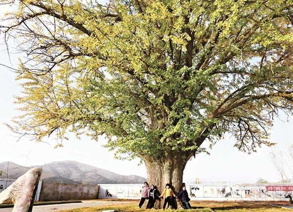 皇藏峪西南城陽社區小學的校園里,也有一株高大繁茂的千年古銀杏,現在年結果仍有300余斤。蒼蒼銀杏伴著孩子們在校園讀書、跳舞、游戲,延續著人間煙火。