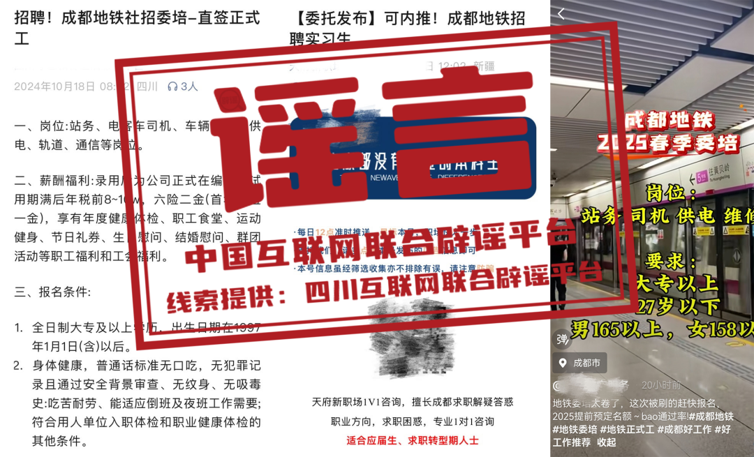 謠 言成都地鐵招聘“提前預(yù)定名額”?濟南地鐵校園招聘有“真題”?