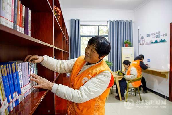環衛工人在呂家戶外勞動者驛站內查閱書籍。