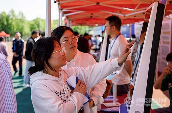 宿州職業技術學院畢業生在查看招聘會的崗位信息。