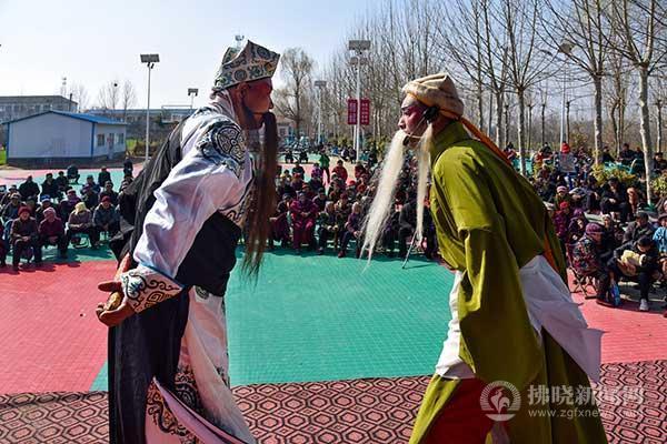 碭山縣周寨鎮的群眾在家門口觀看戲曲表演。