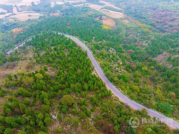 航拍的埇橋區夾溝鎮草場村草場盤山公路。