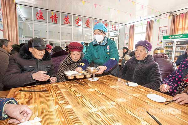 靈璧縣大路鎮蘇宅村老年人在老年食堂內用餐。