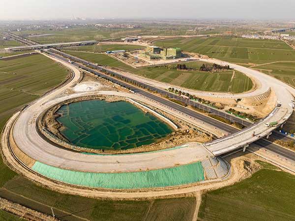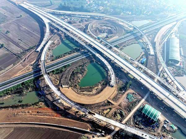 2024年10月23日,建設中的徐淮阜高速蕭縣孫圩子樞紐立交橋。