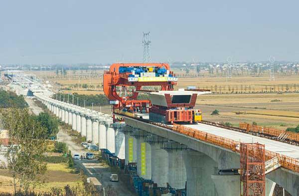 合新高鐵跨泗縣新汴河特大橋施工現場。