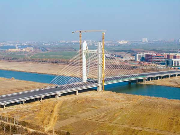 已基本完工的靈璧新汴河航道鐘靈大橋。
