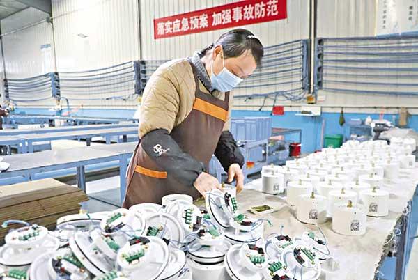 2月5日,節后第一個工作日,位于埇橋區汴河鎮的安徽恒泰電氣科技股份有限公司的員工開足馬力趕訂單。 特約攝影 張成伍