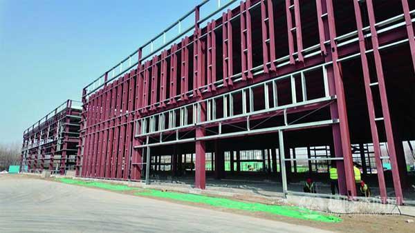 正在建設(shè)中的華利安(安徽)服裝有限公司的鋼結(jié)構(gòu)廠房。