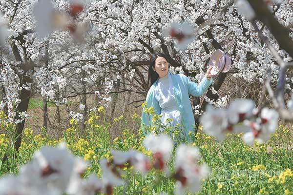 暮色漸濃,乾山的喧囂歸于寧靜。陳家勝收拾工具趕往下一個果園,游客們捧著杏花枝踏上了歸途。陳家勝仔細檢查疏枝后的杏樹,笑著說:“以前覺得種杏樹是苦活,現在才知道,花里真藏著寶哩。”