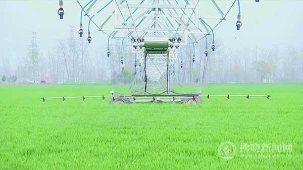 埇橋區(qū)灰古鎮(zhèn)高標準農(nóng)田里,平行行走式水肥藥一體機正在噴灑水肥和農(nóng)藥。