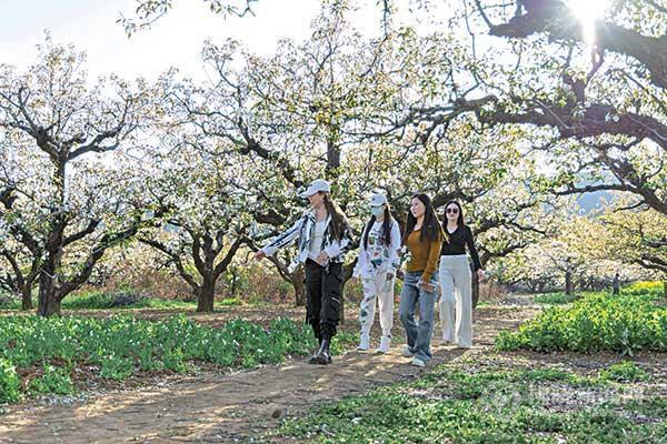 游客在清水村梨園里踏春。