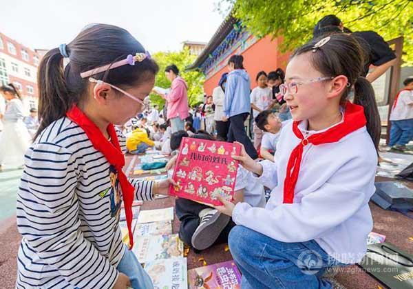 4月23日,市第一小學校本部舉行第二十三屆“書海揚帆”讀書節活動,營造愛讀書、讀好書、善讀書的濃厚氛圍。活動中,學校開展形式多樣的讀書交流活動,全體師生及家長代表通過親子朗誦、主題閱讀、圖書義賣、書畫展等形式,培養學生良好的閱讀習慣,引導學生愛上閱讀,讓書香飄滿校園。 記者 蘇洋 攝